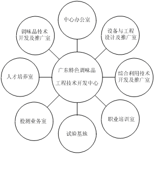 中心业务机构由中心办公室、调味品技术开发及推广室、综合利用技术开发及推广室、工程设计及推广室、检验业务室、人才培养室、职业培训室及试验基地等部门组成。